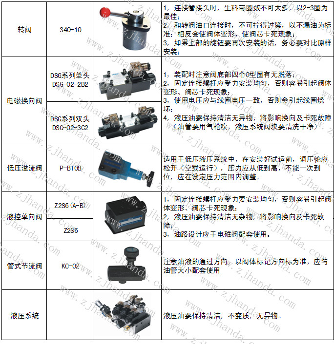 液壓閥裝配及操作注意事項