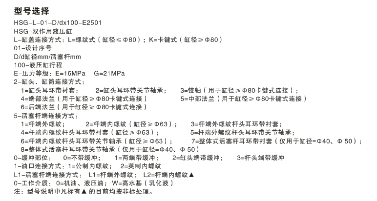 4)按照以上三條,可按照以下HSG油缸型號(hào)說明,明確您需要的型號(hào)